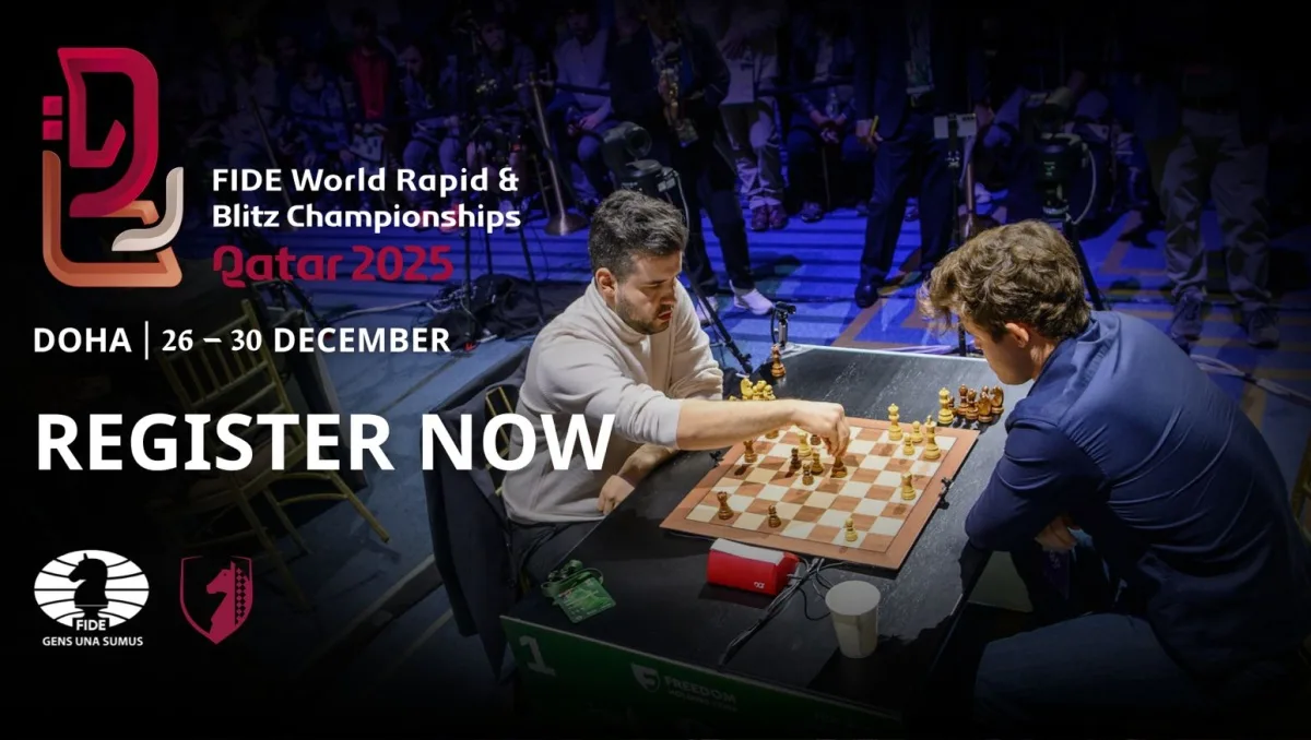 ثبتنام برای مسابقات جهانی شطرنج سریع و برقآسای 2025 (FIDE World Rapid & Blitz Championships) رسماً آغاز شده است. این رویداد بزرگ از 25 تا 31 دسامبر (4 تا 10 دی 1404) در دوحه قطر برگزار میشود و جایزهای یک میلیون یورویی در انتظار شطرنجبازان جهان است.
