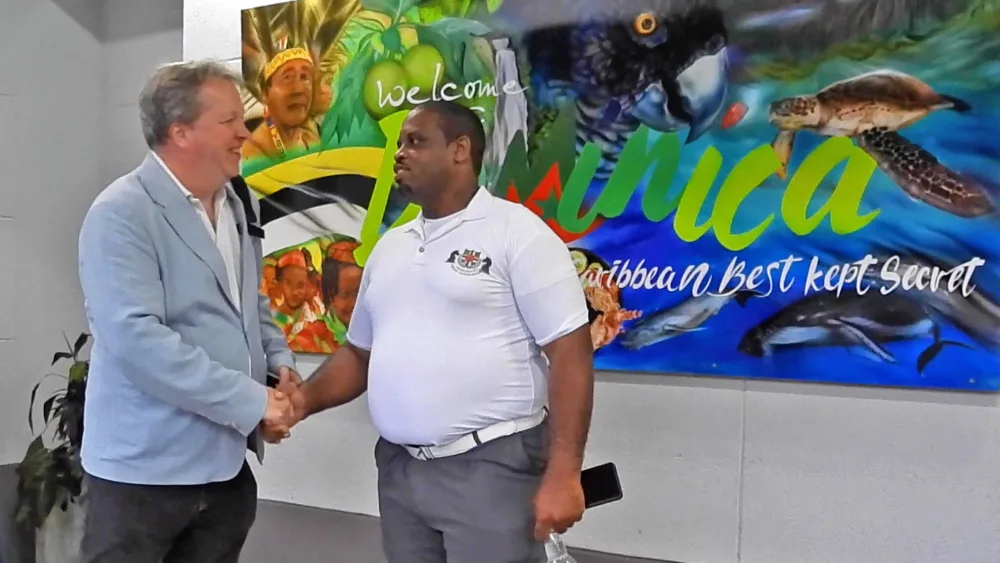 نیجل شورت توسط کارلتون موروان، رئیس فدراسیون شطرنج دومینیکا مورد استقبال قرار گرفت