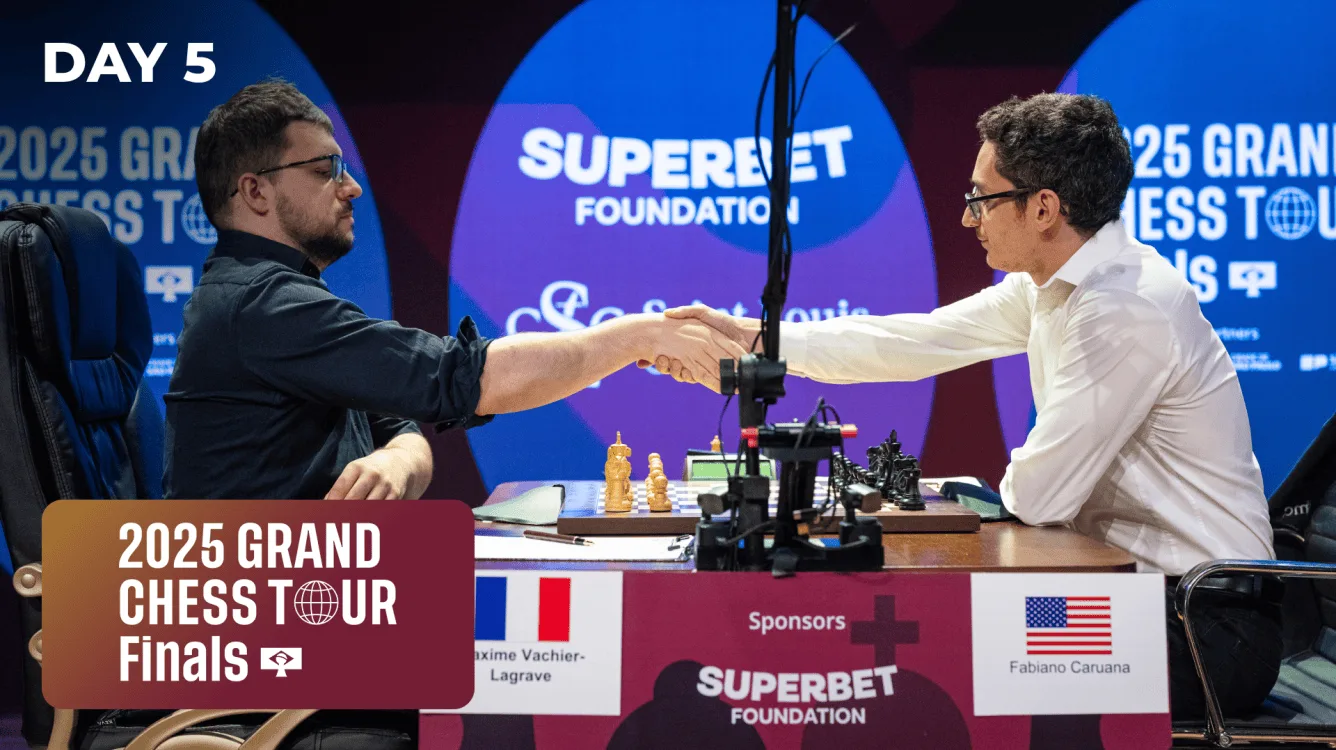 هر دو دیدار فینال مسابقات شطرنج Grand Chess Tour 2025 با تساوی به پایان رسید و قهرمانی در مرحله رپید و بلیتس مشخص خواهد شد. کاروانا و واشیهلاگراو در دیدار اصلی و پراگناناندا و آرونیان در دیدار ردهبندی با تساوی به مرحله بعد رفتند.