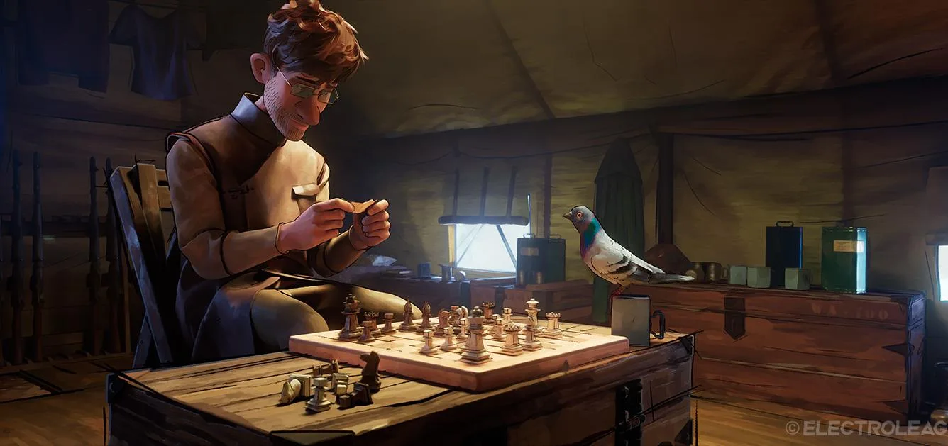 - قاصدک قهرمان: حرکات شطرنج توسط یک کبوتر قاصد به نام ایکاروس بین خطوط جبهه رد و بدل میشود