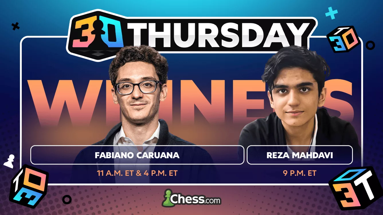 در یک روز تاریخی برای مسابقات شطرنج آنلاین، استاد بزرگ فابیانو کاروانا (Fabiano Caruana) اولین شطرنجبازی شد که موفق به کسب دو قهرمانی در تورنمنتهای 3 0 Thursday در یک روز شد. این اتفاق در 20 فوریه 2026 (1 اسفند 1404) رخ داد و کاروانا پس از پیروزی در تورنمنت سه شنبه عنواندار (Titled Tuesday) این هفته، بار دیگر درخشید. رضا مهدوی (Reza Mahdavi) شطرنجباز ایرانی نیز با پیروزی هیجانانگیز بر کاروانا، سومین تورنمنت روز را فتح کرد.