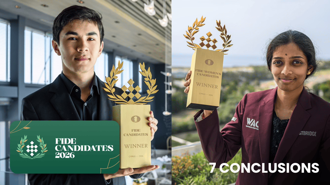 استادبزرگ جاوا خیر سندراو (GM Javokhir Sindarov) با نمایشی خیرهکننده در مسابقات کاندیدای فیده ۲۰۲۶ (FIDE Candidates Tournament 2026) در قبرس به پیروزی رسید و مبلغ ۱۷۰٬۰۰۰ یورو (حدود ۲۰۰٬۰۰۰ دلار / معادل تقریبی ۲۰ میلیارد تومان) جایزه نقدی را به همراه حق رویارویی با استادبزرگ گوکش دوماراجو (GM Gukesh Dommaraju)، قهرمان شطرنج جهان، کسب کرد. از سوی دیگر، استادبزرگ وایشالی رامشبا بو (GM Vaishali Rameshbabu) در مسابقات کاندیدای زنان فیده ۲۰۲۶ (2026 FIDE Women’s Candidates) با پیروزی در دور پایانی، مبلغ ۶۵٬۴۰۰ یورو (حدود ۷۷٬۰۰۰ دلار / معادل تقریبی ۷٫۷ میلیارد تومان) و فرصت رقابت با استادبزرگ جو ونجون (GM Ju Wenjun)، قهرمان شطرنج جهان زنان، را به دست آورد. در این گزارش به هفت نتیجۀ کلیدی از سه هفته رقابت فشرده و پرحاشیه میپردازیم.